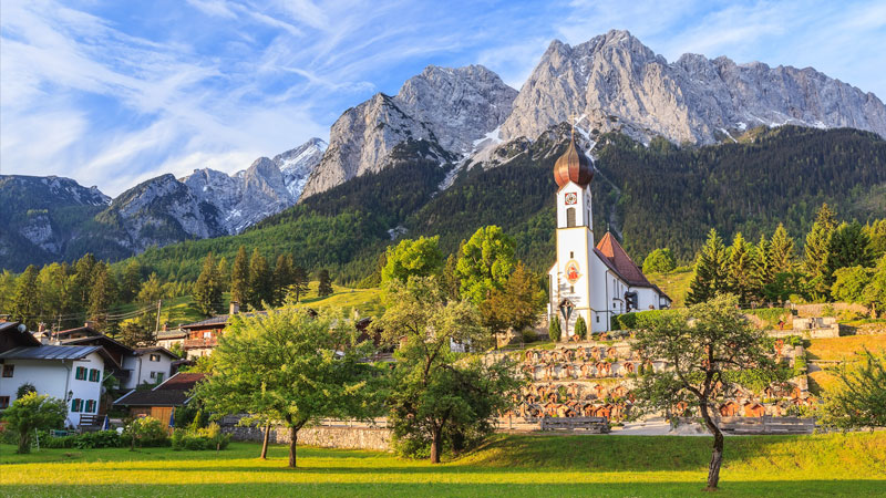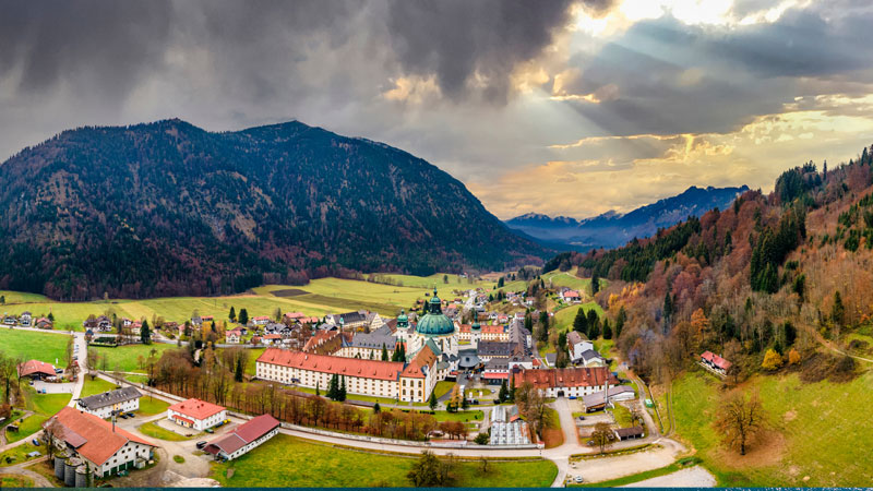 Tysklands till ytan största delstat Bayern har flera olika ansikten att visa upp. Vi väljer den allra sydligaste delen runt Ammergauer-alperna. Dessa sträcker sig mellan floderna Lech och Loisach och gränsar till Tyrolen. Den sköna byn Ettal som bas utforskar vi landskapet omkring samt området runt OS-staden Garmisch-Partenkirchen. Bakgrundskulissen bildas av bergskedjan Wetterstein med landets högsta topp Zugspitze.